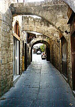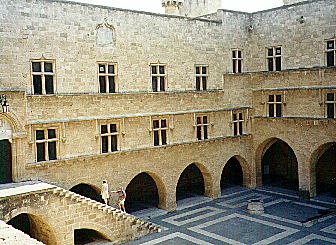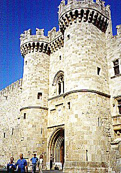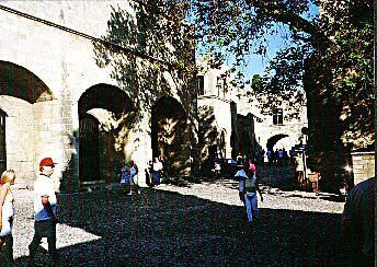 came to Rhodes. An interesting footnote about the Knights of St. John has to do with their administrative order. Since they came from a variety of so-called Catholic countries of Europe, the Knights divided themselves into national or linguistic groups called Tongues.Thus there were Tongues of Auvergne, England, Provence, Italy, Spain, France, and Germany. In Rhodes each of these had an "Inn" that was governed by a bailiff and a council. These buildings are now government offices and are not open to the public. |